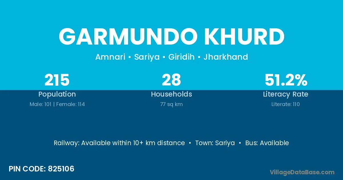 Garmundo Khurd village has a total population of 215 people, of which 101 are males and 114 are females.
