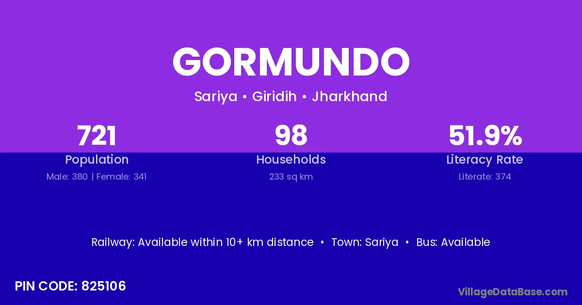 Gormundo village is located in the Sariya Subdivision of the Giridih district in Jharkhand .