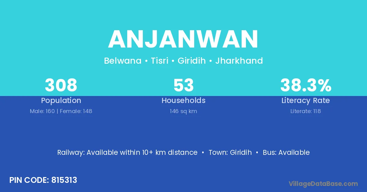 Anjanwan village has a total population of 308 people, of which 160 are males and 148 are females.