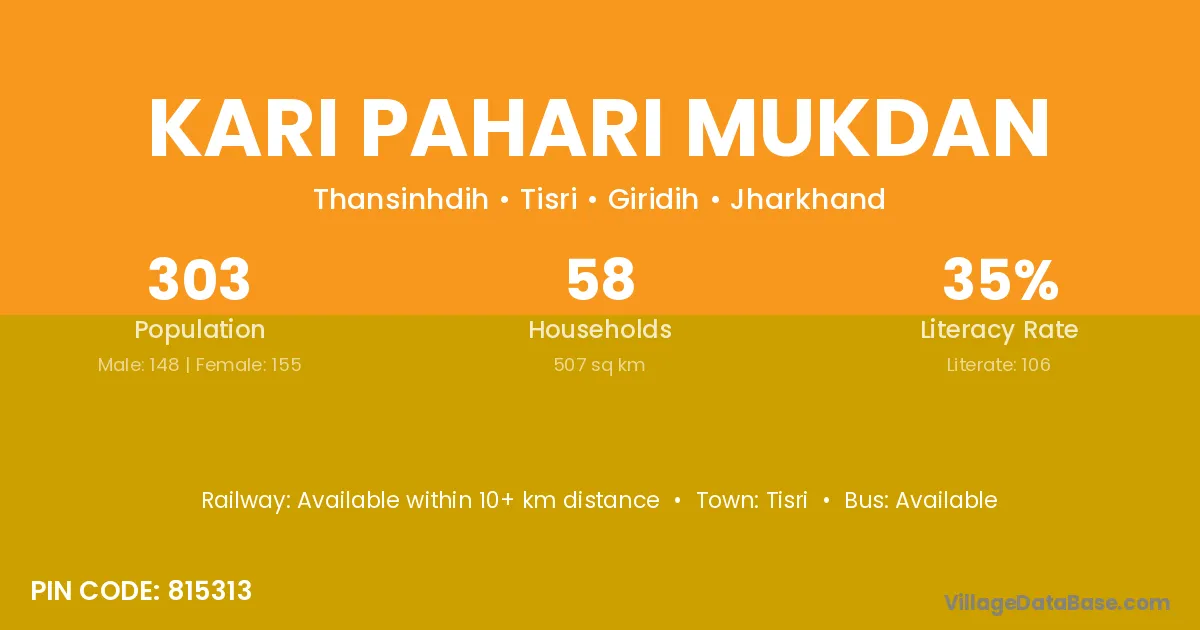 Tisri is the nearest town to Kari Pahari Mukdan village for major economic activities