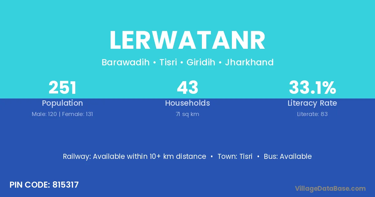 Lerwatanr village has a total population of 251 people, of which 120 are males and 131 are females.