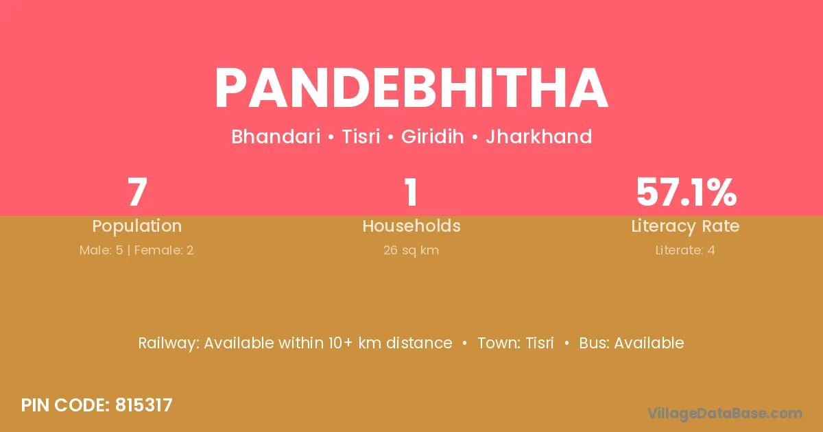 Pandebhitha village has a total population of 7 people, of which 5 are males and 2 are females.
