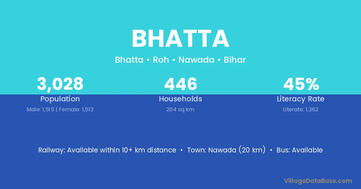 According to Census 2011 information, the village code of Bhatta village is 814155.