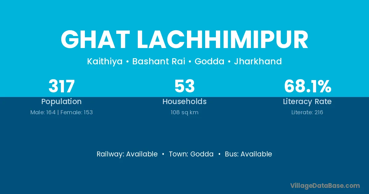 Ghat Lachhimipur village has a total population of 317 people, of which 164 are males and 153 are females.