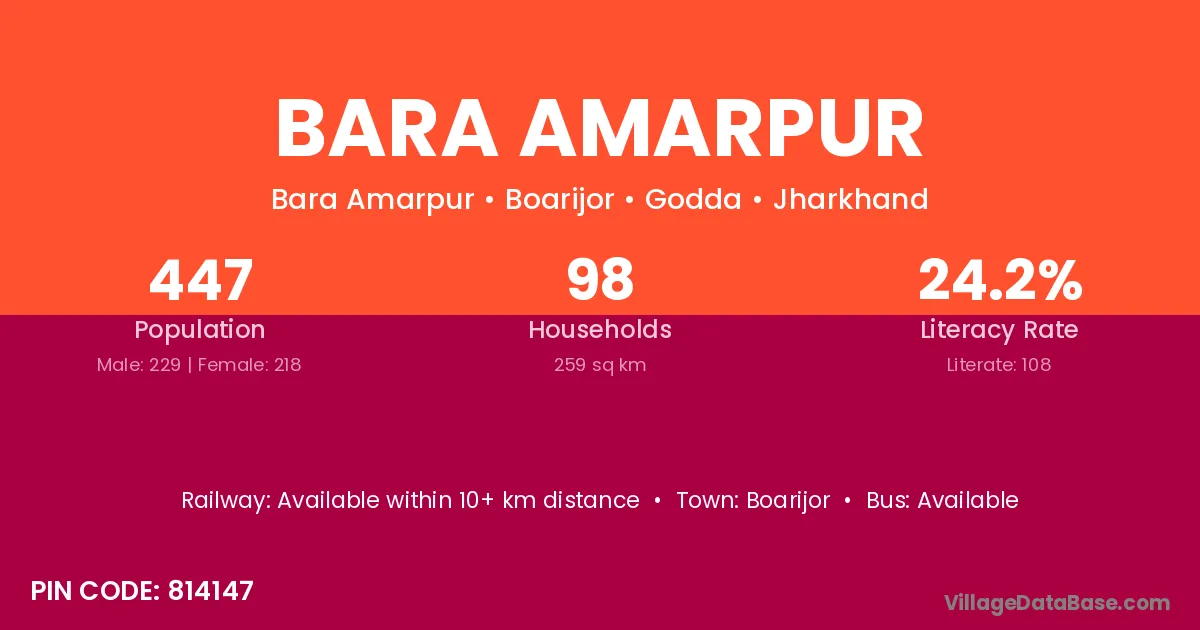 Bara Amarpur village has a total population of 447 people, of which 229 are males and 218 are females.