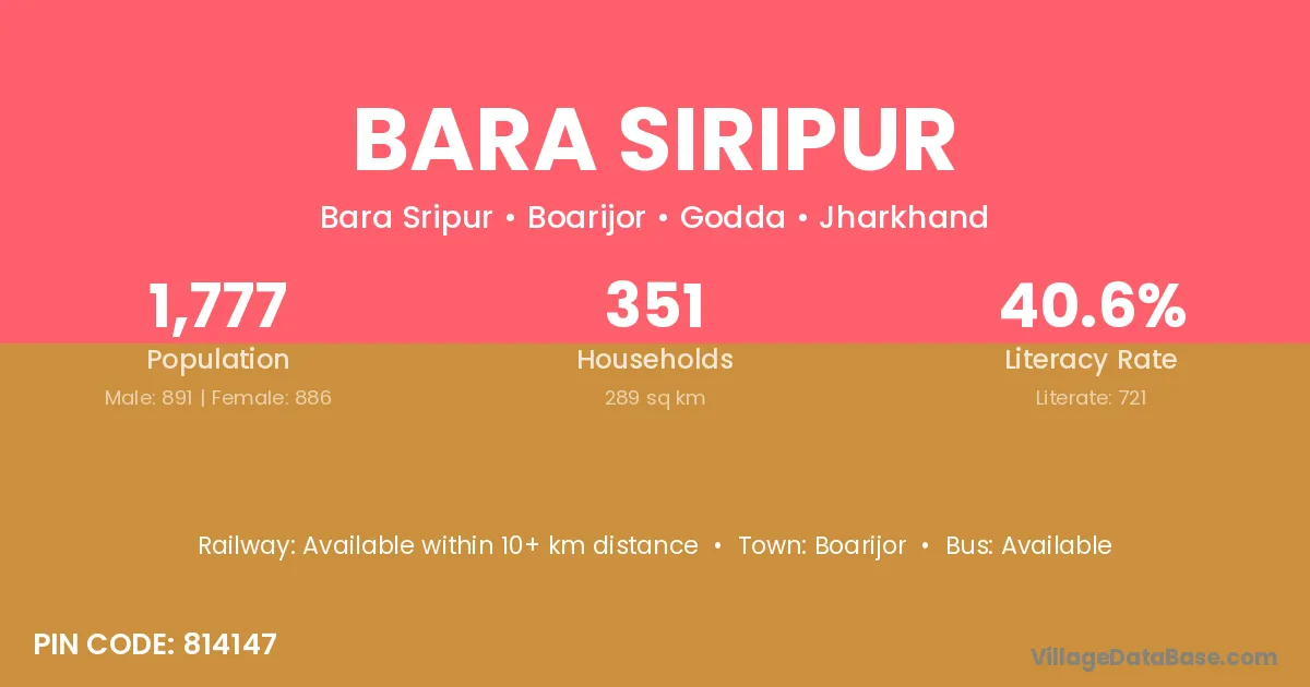 Boarijor is the nearest town to Bara Siripur village for major economic activities