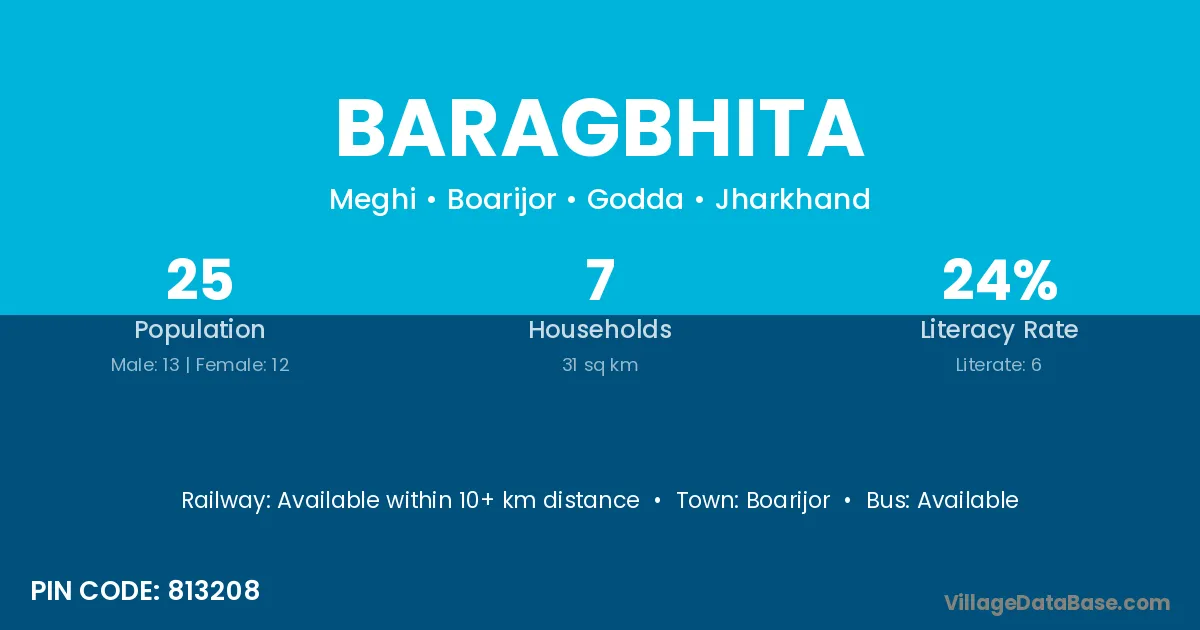 Baragbhita village has a total population of 25 people, of which 13 are males and 12 are females.
