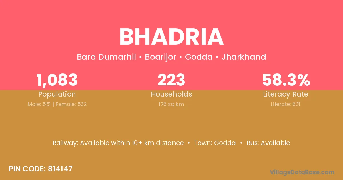 Godda is the nearest town to Bhadria village for major economic activities