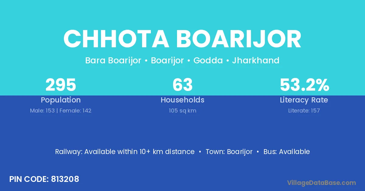 Chhota Boarijor village has a total population of 295 people, of which 153 are males and 142 are females.
