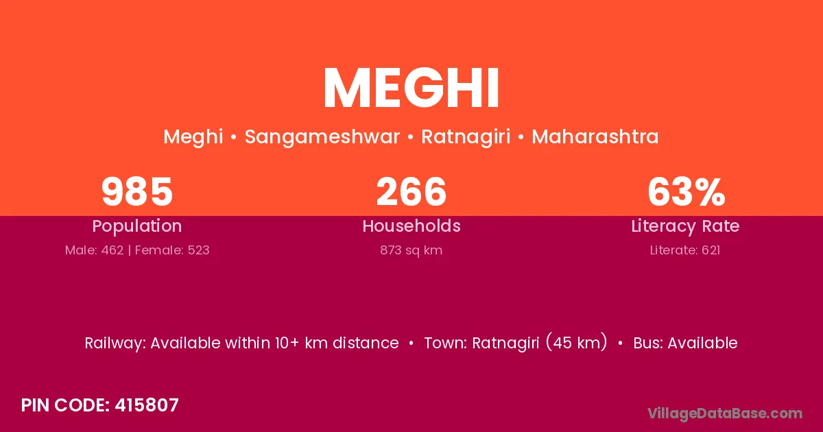 According to Census 2011 information, the village code of Meghi village is 813208.
