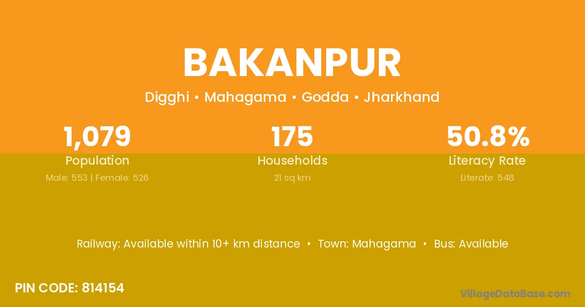 Mahagama is the nearest town to Bakanpur village for major economic activities