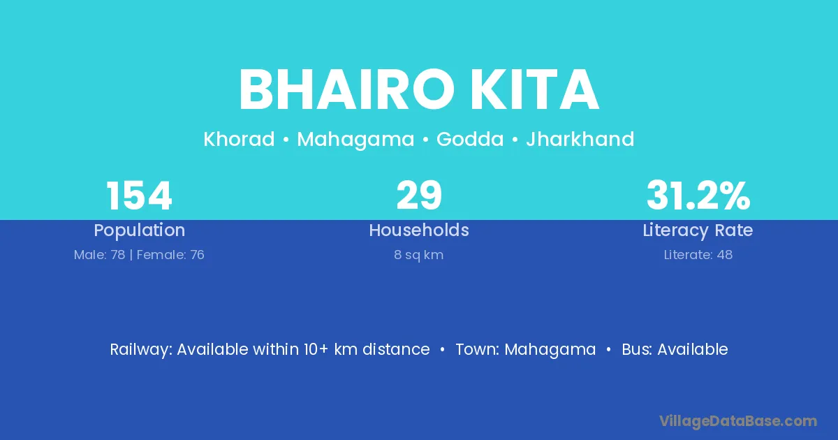 Bhairo Kita village has a total population of 154 people, of which 78 are males and 76 are females.