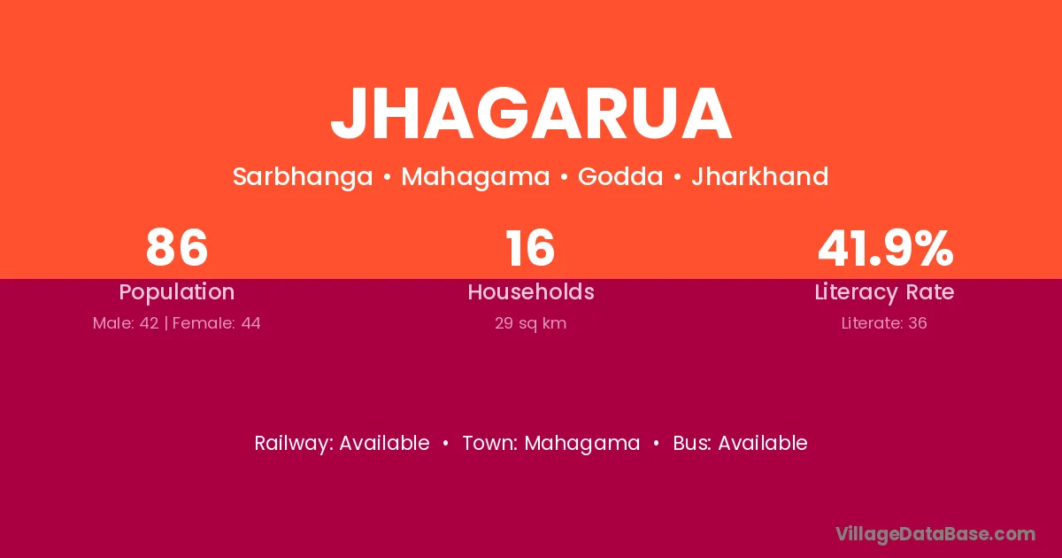 Jhagarua village has a total population of 86 people, of which 42 are males and 44 are females.