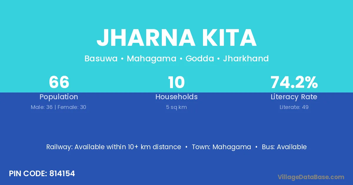 Jharna Kita village has a total population of 66 people, of which 36 are males and 30 are females.