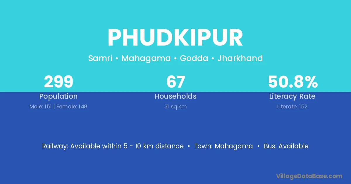 Mahagama is the nearest town to Phudkipur village for major economic activities