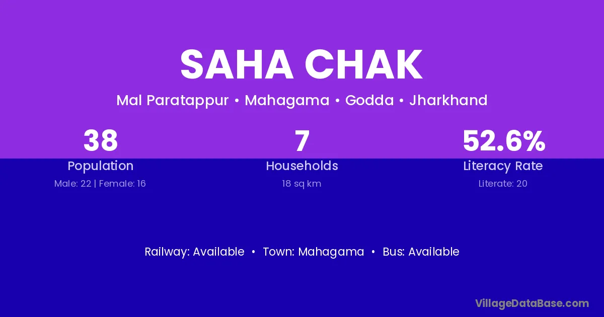 Saha Chak village has a total population of 38 people, of which 22 are males and 16 are females.