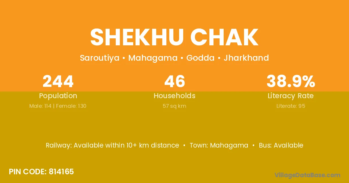 Shekhu Chak village has a total population of 244 people, of which 114 are males and 130 are females.