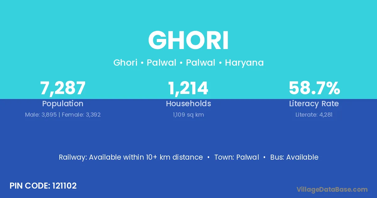 The literacy rate of Ghori village is 40.45%. Male literacy stands at 46.44% and female literacy at 33.22%.