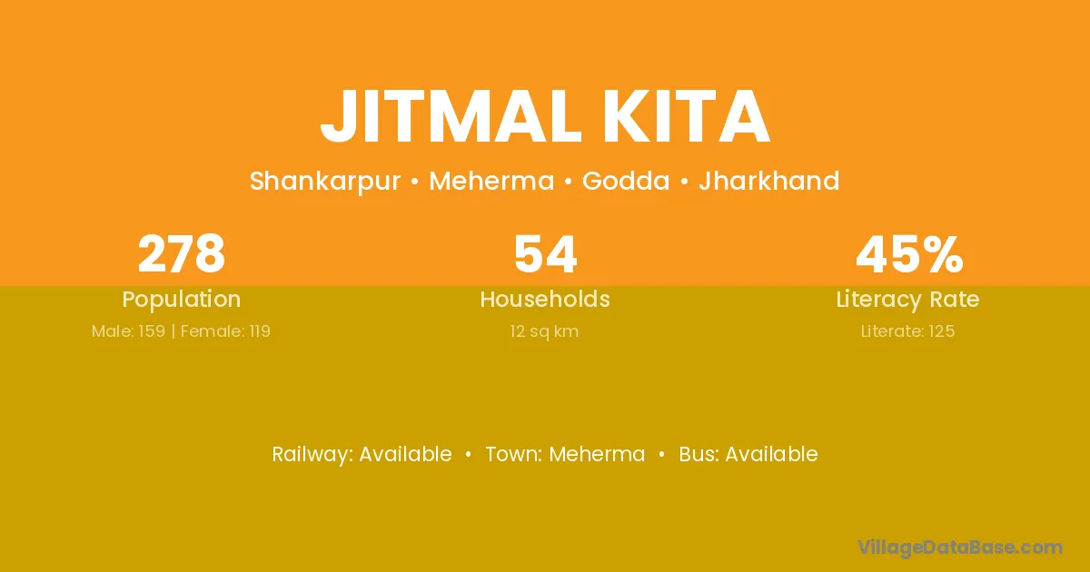 Jitmal Kita village has a total population of 278 people, of which 159 are males and 119 are females.