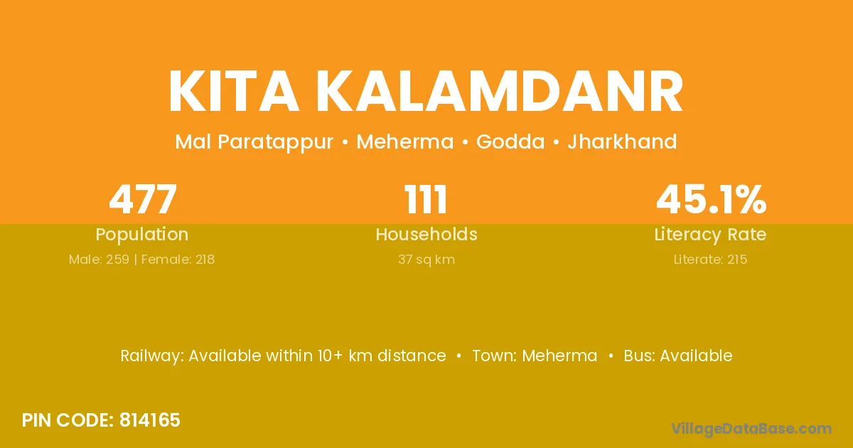 Kita Kalamdanr village has a total population of 477 people, of which 259 are males and 218 are females.