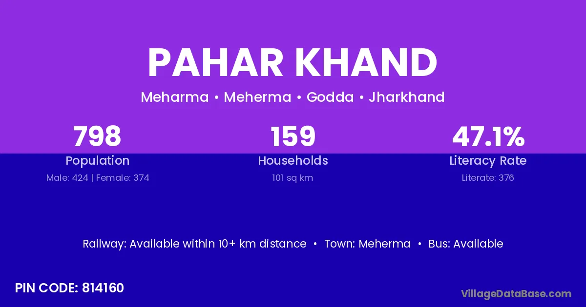 Meherma is the nearest town to Pahar Khand village for major economic activities