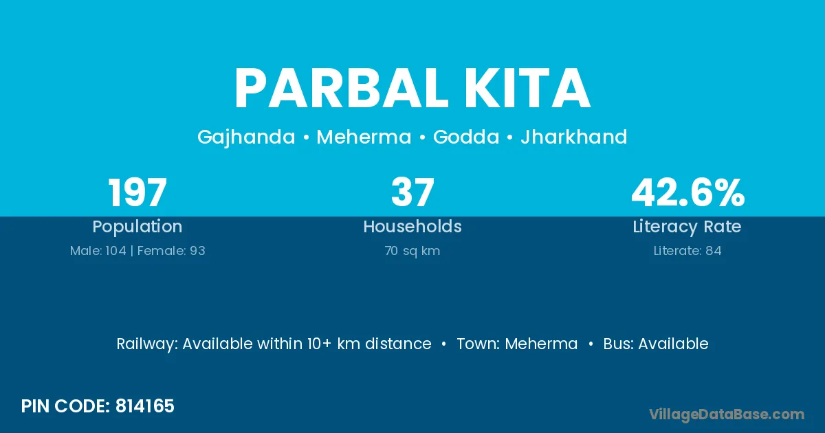 Parbal Kita village has a total population of 197 people, of which 104 are males and 93 are females.