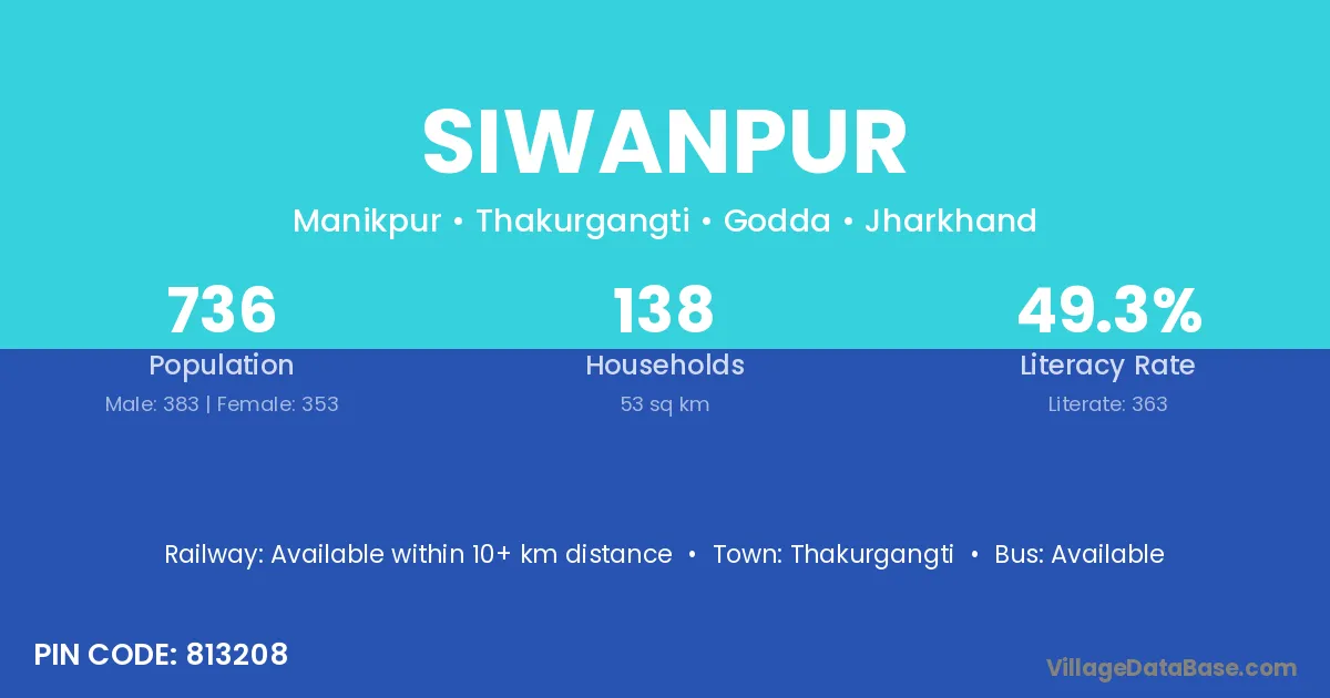 The literacy rate of Siwanpur village is 38.99%. Male literacy stands at 50.00% and female literacy at 26.30%.