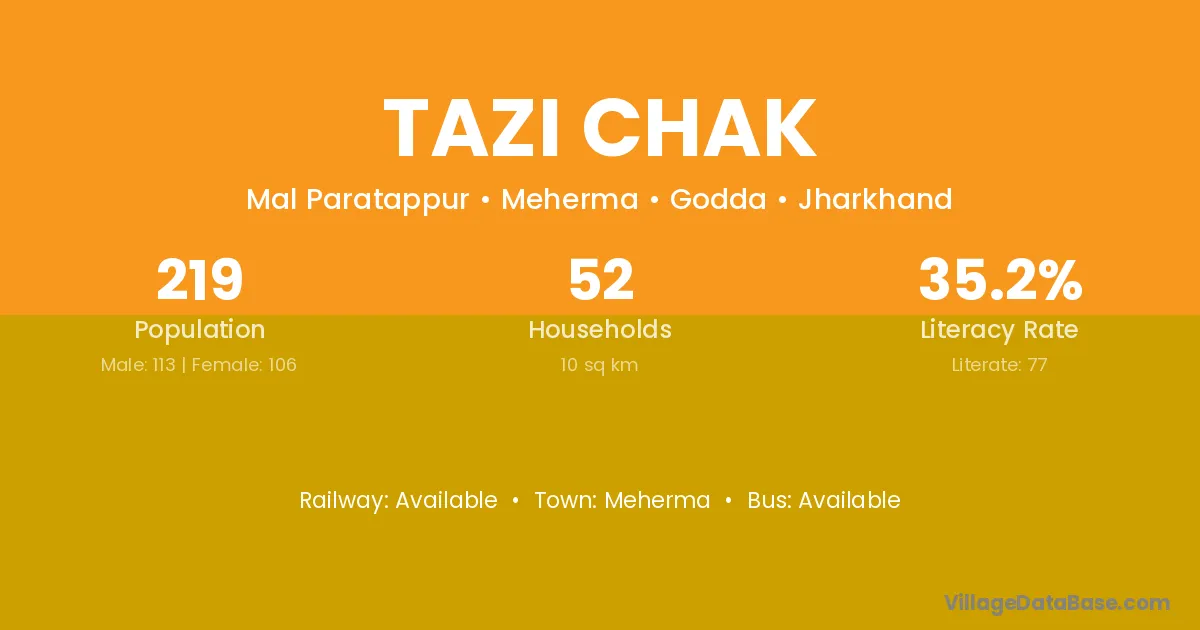 Tazi Chak village has a total population of 219 people, of which 113 are males and 106 are females.