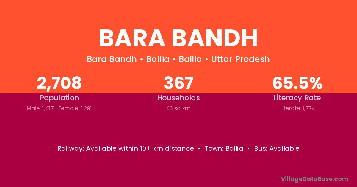 The literacy rate of Bara Bandh village is 48.81%. Male literacy stands at 61.67% and female literacy at 35.11%.