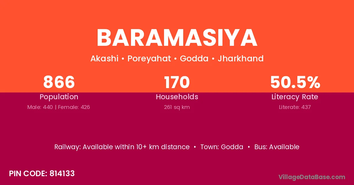 Baramasiya village has a total population of 866 people, of which 440 are males and 426 are females.