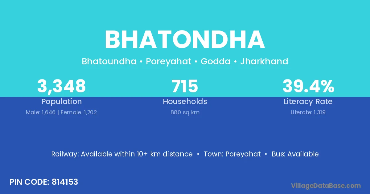 Bhatondha village is located in the Poreyahat Subdivision of the Godda district in Jharkhand .