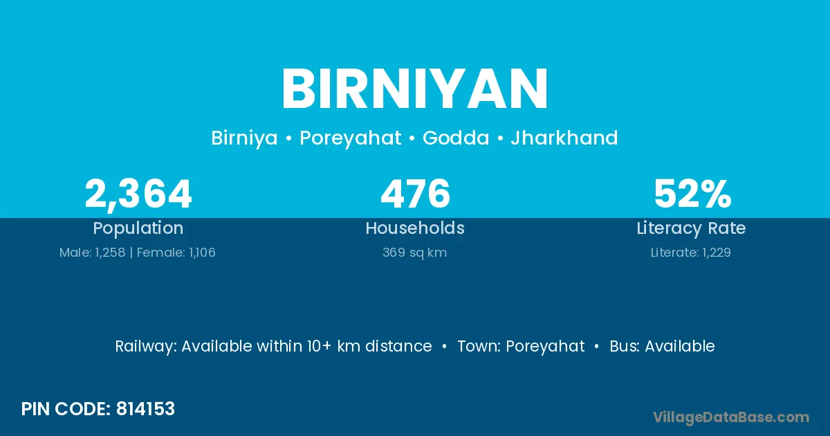 Poreyahat is the nearest town to Birniyan village for major economic activities