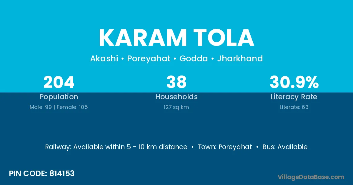 Poreyahat is the nearest town to Karam Tola village for major economic activities