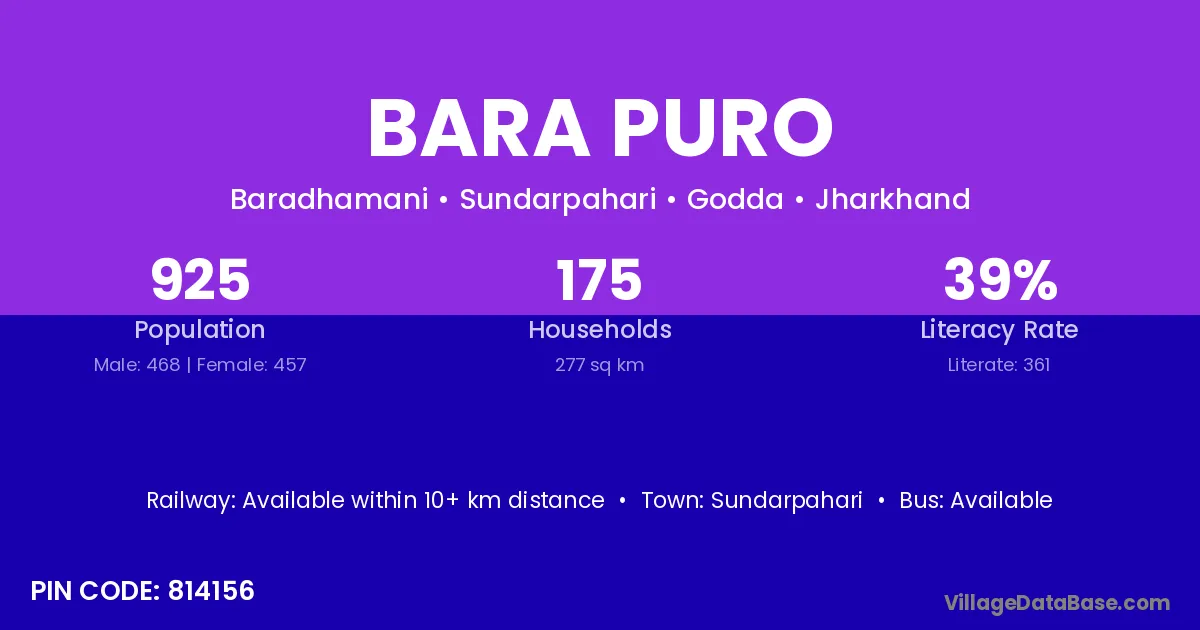 Bara Puro village is located in the Sundarpahari Subdivision of the Godda district in Jharkhand .