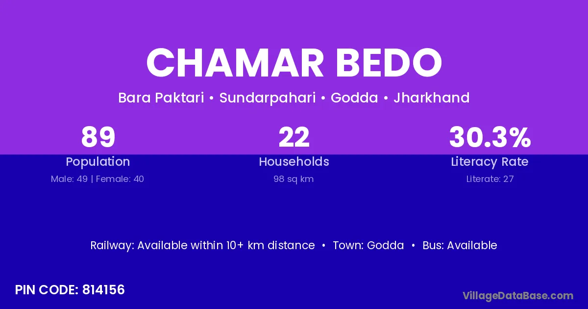 Godda is the nearest town to Chamar Bedo village for major economic activities