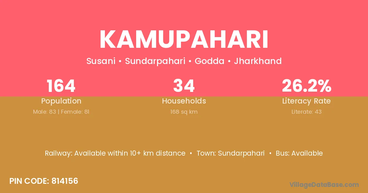 Kamupahari village has a total population of 164 people, of which 83 are males and 81 are females.
