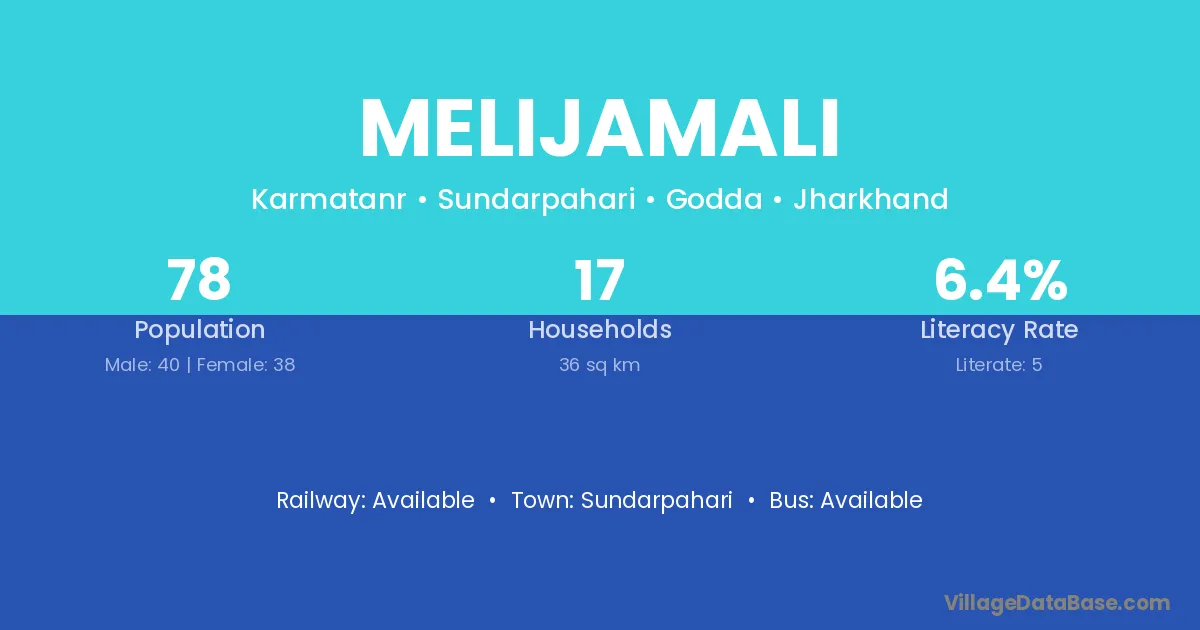Melijamali village has a total population of 78 people, of which 40 are males and 38 are females.
