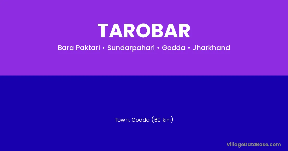 Godda (60 km) is the nearest town to Tarobar village for major economic activities and is located approximately 60 km away.
