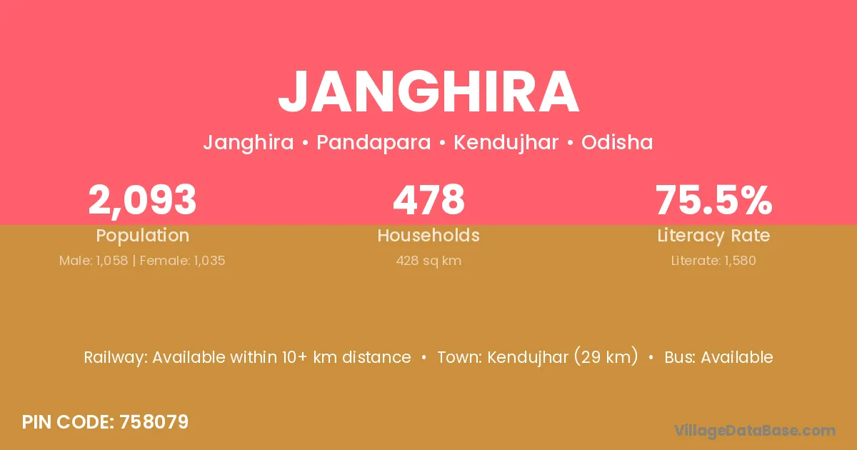 The literacy rate of Janghira village is 43.09%. Male literacy stands at 55.38% and female literacy at 29.31%.