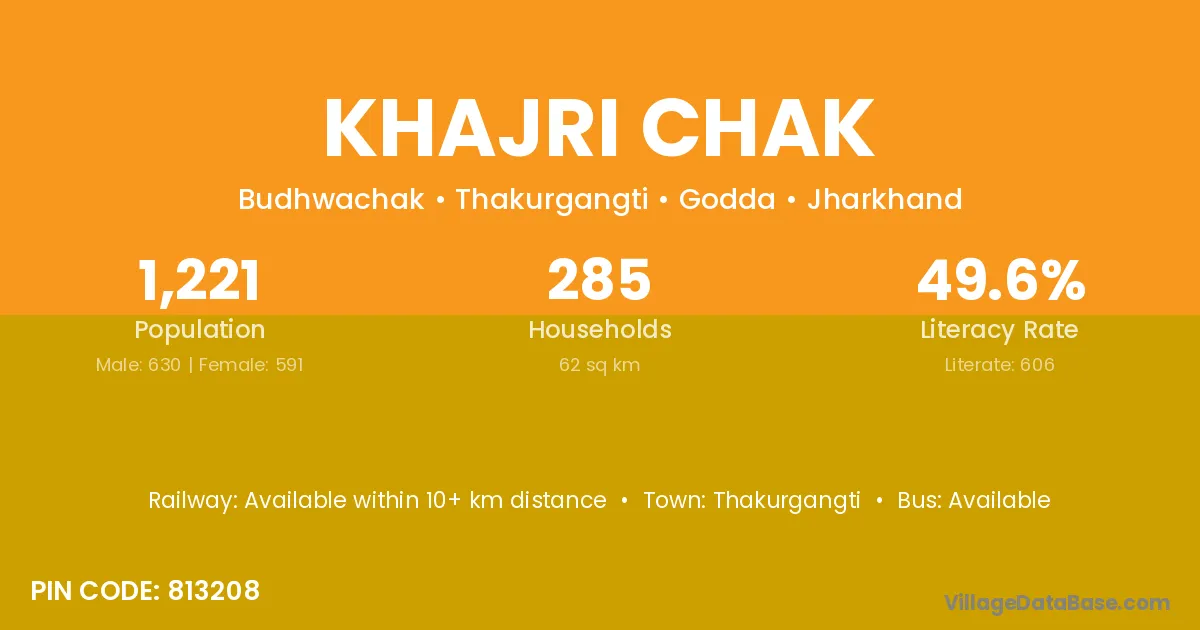 Thakurgangti is the nearest town to Khajri Chak village for major economic activities