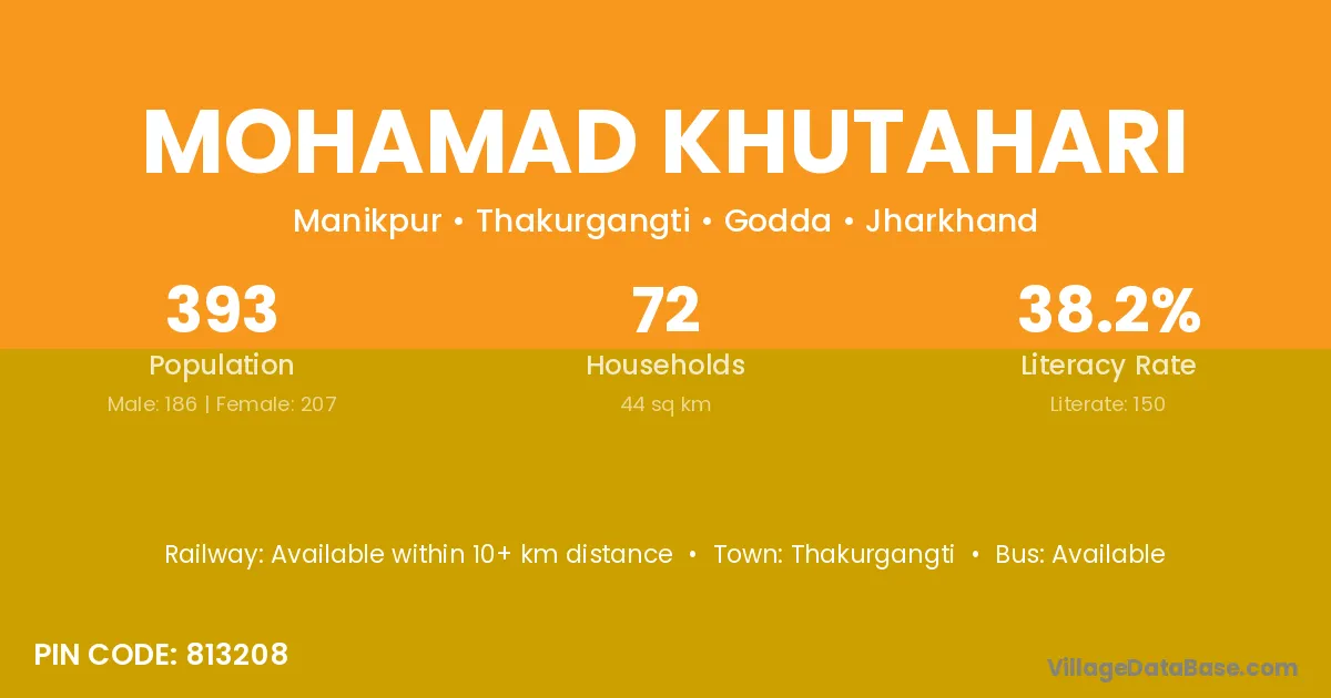 Mohamad Khutahari village has a total population of 393 people, of which 186 are males and 207 are females.