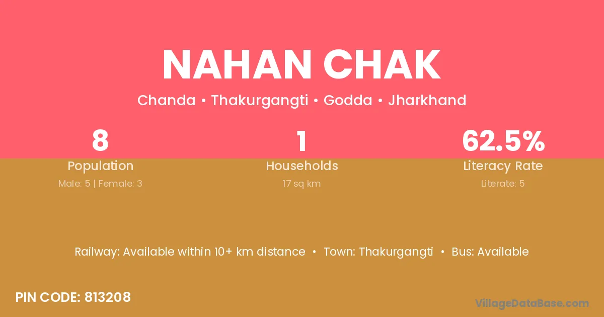 Nahan Chak village has a total population of 8 people, of which 5 are males and 3 are females.