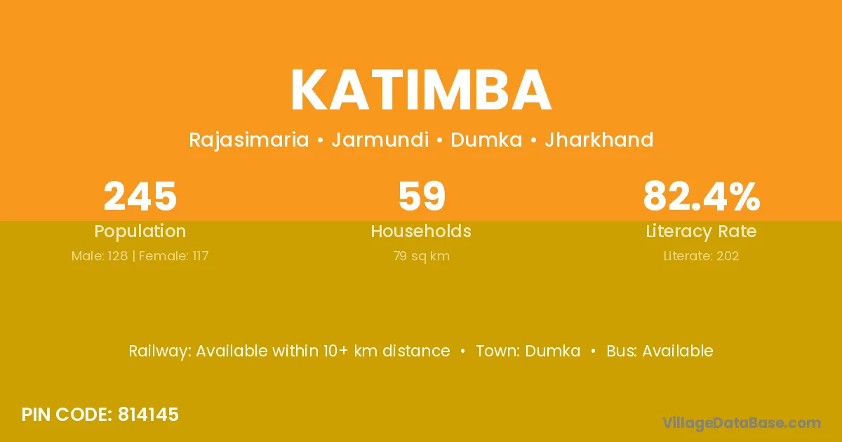 The literacy rate of Katimba village is 52.73%. Male literacy stands at 61.44% and female literacy at 44.39%.