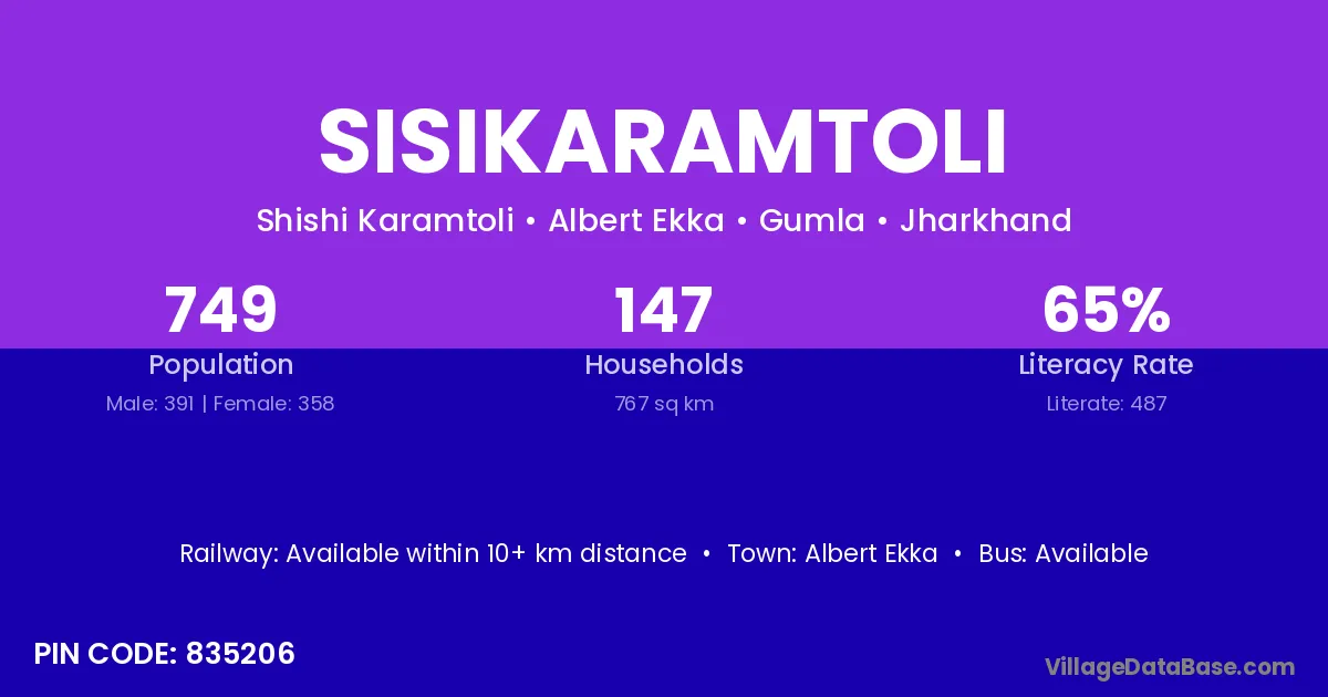 Albert Ekka is the nearest town to Sisikaramtoli village for major economic activities