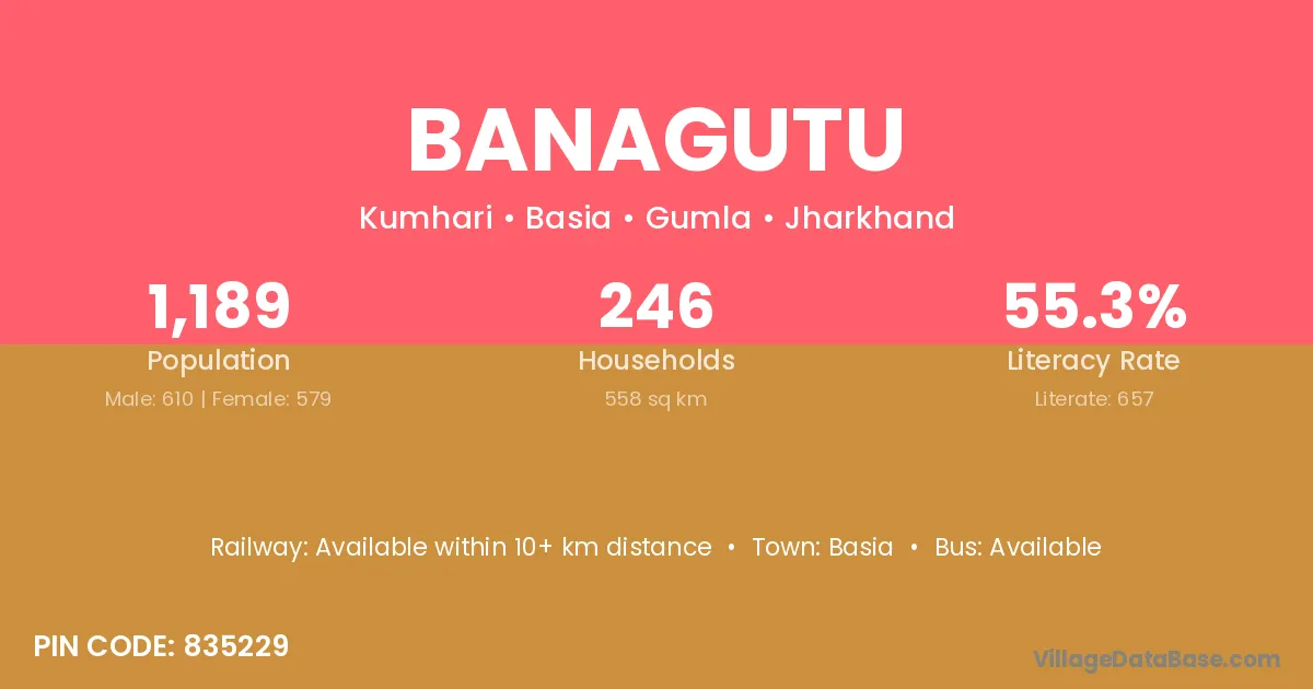 Banagutu village has a total population of 1,189 people, of which 610 are males and 579 are females.