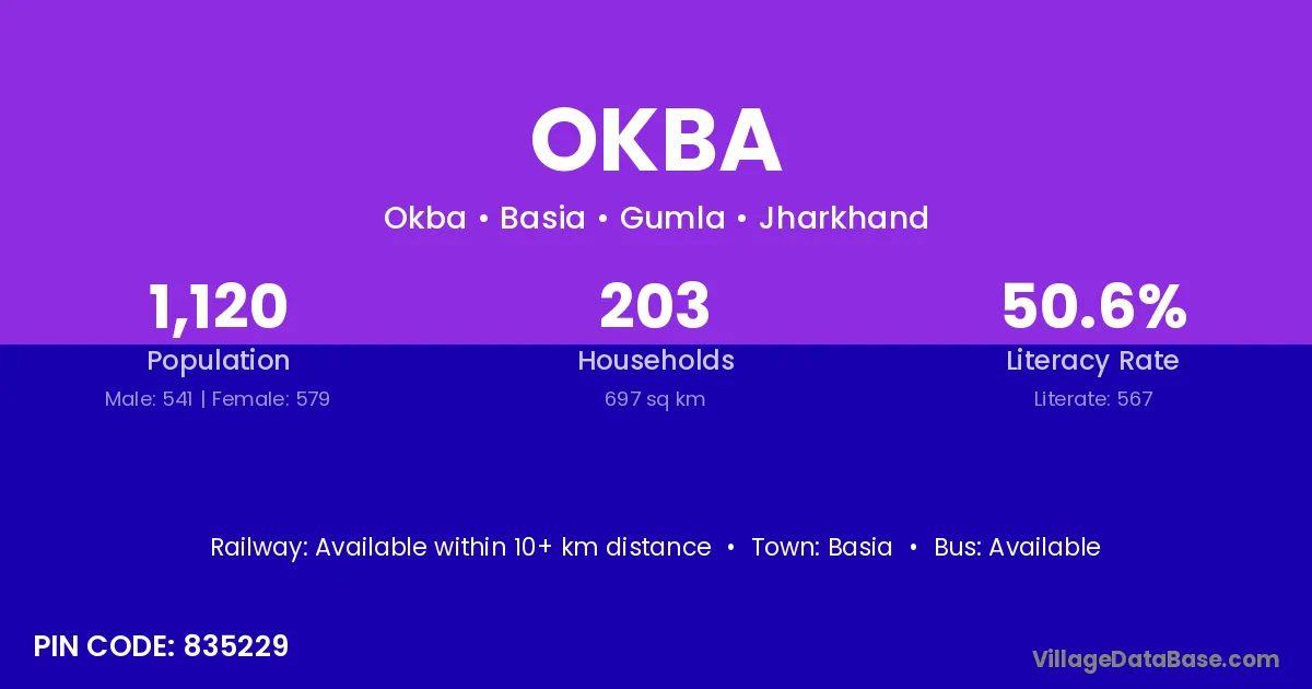 According to Census 2011 information, the village code of Okba village is 835229.