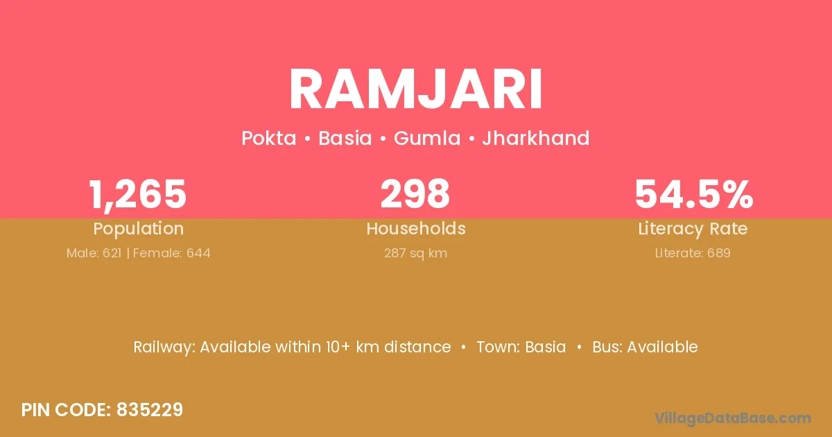 Ramjari village has a total population of 1,265 people, of which 621 are males and 644 are females.