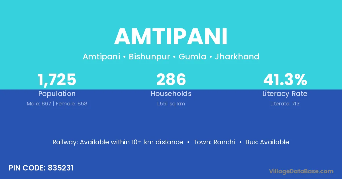 Ranchi is the nearest town to Amtipani village for major economic activities