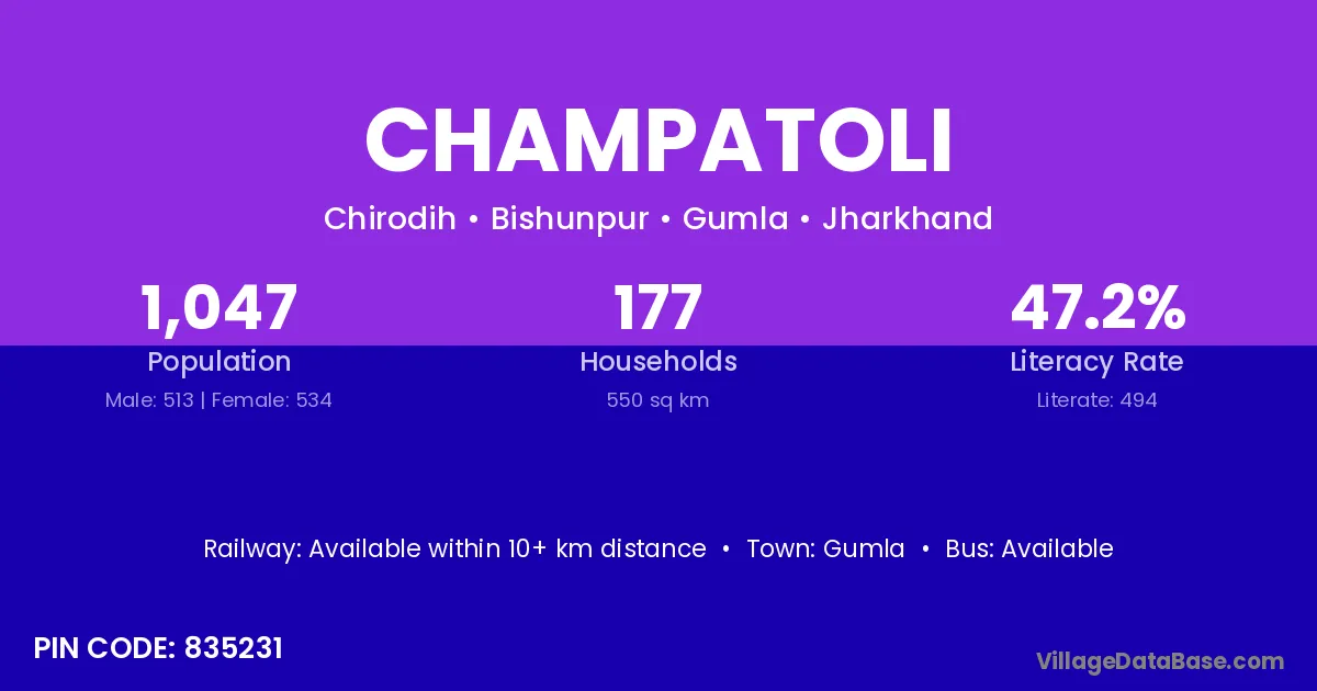 Gumla is the nearest town to Champatoli village for major economic activities
