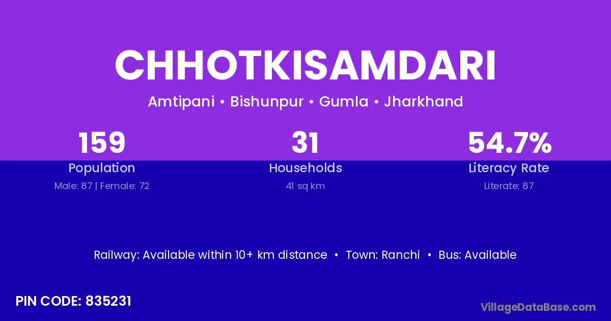 Ranchi is the nearest town to Chhotkisamdari village for major economic activities